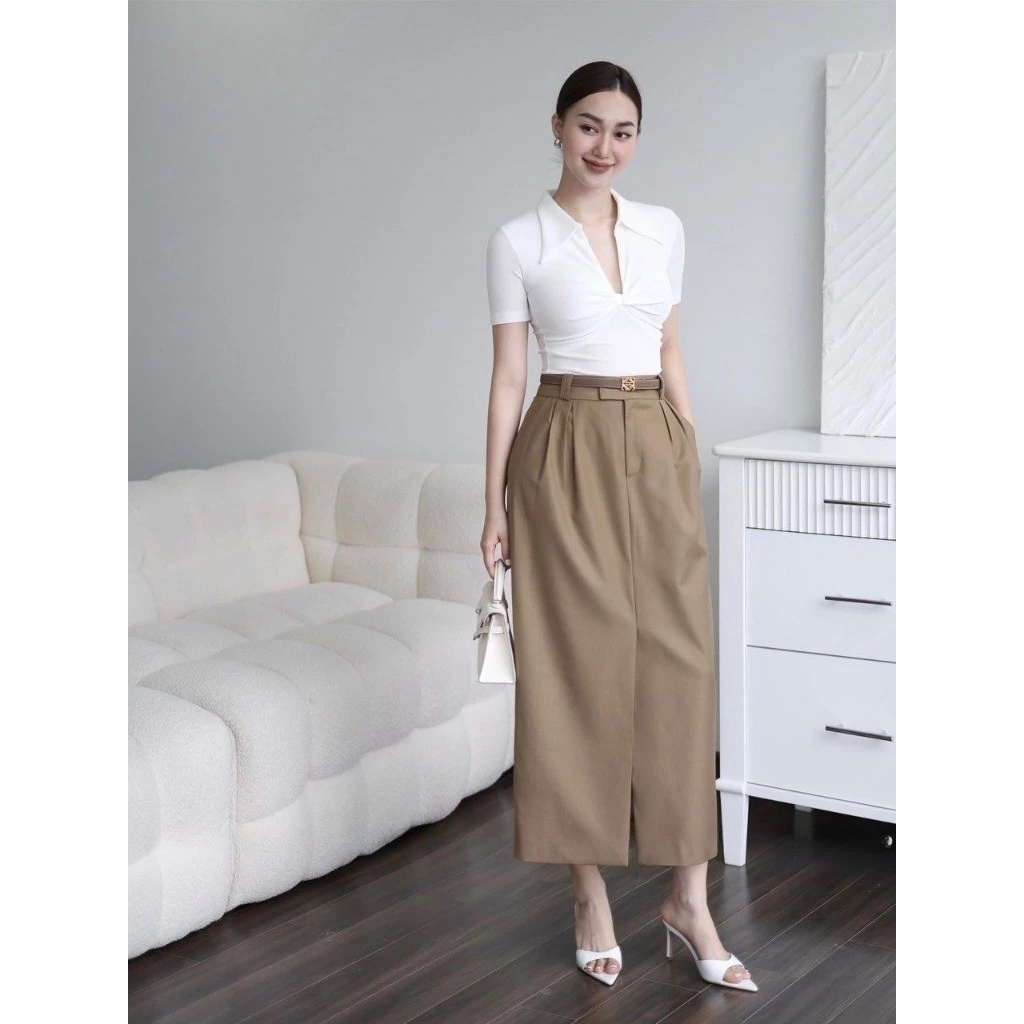 Chân váy dáng dài xẻ trước là item không thể thiếu trong tủ đồ công sở. Thiết kế mang phong cách hiện đại và thanh lịch. Sản phẩm giúp bạn dễ dàng tạo nên nhiều outfit khác nhau.