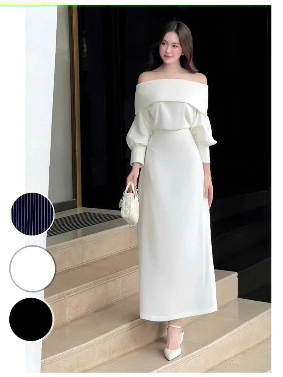 Váy dự tiệc trễ vai là lựa chọn lý tưởng cho những ngày se lạnh. Thiết kế mang phong cách sang trọng và cuốn hút. Sản phẩm giúp bạn nổi bật trong mọi buổi tiệc.