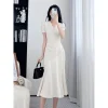 Phần tay bồng tạo điểm nhấn nổi bật. Thiết kế này giúp tổng thể trông mềm mại hơn. Chi tiết đính nơ mang lại vẻ nữ tính và duyên dáng. Những điểm nhấn nhỏ giúp chiếc váy trở nên đặc biệt hơn.